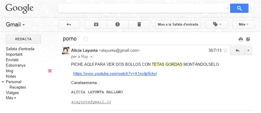 Cómo podéis comprobar es un mail real, y aunque debería decir PINCHE y no PICHE (¡maldita disléxia!) el objetivo está conseguido, QUE SU CABEZA PROCESE DOS PALABRAS CLAVES: